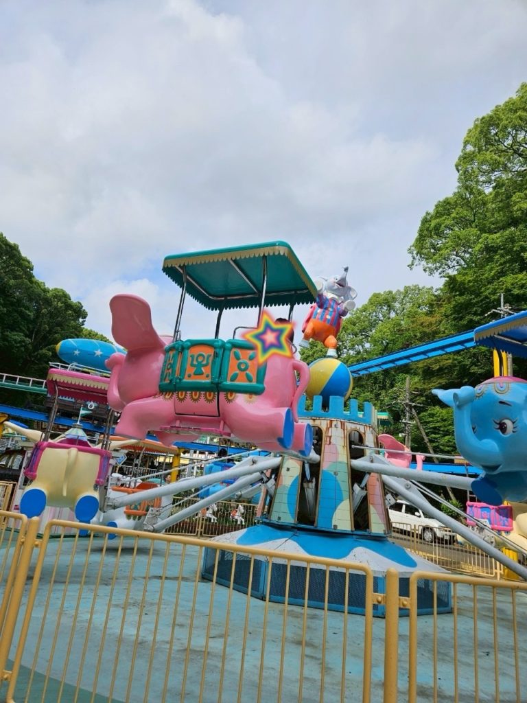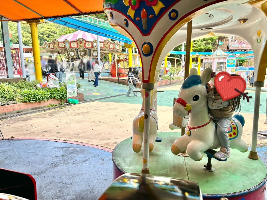 この乗り物、【福岡市動物園】の園内遊園地にもあったので私がひそかに乗りたかったんです。