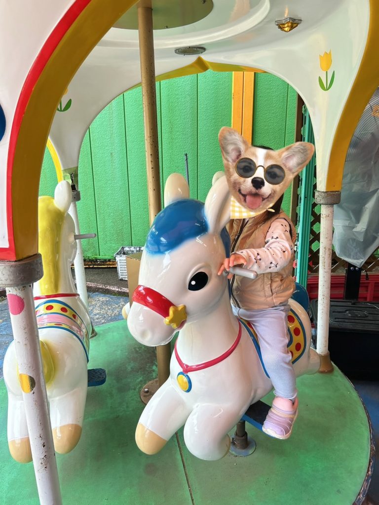 奥に大きいメリーゴーランドあるのに・・・こっちのほうが楽しそう。笑