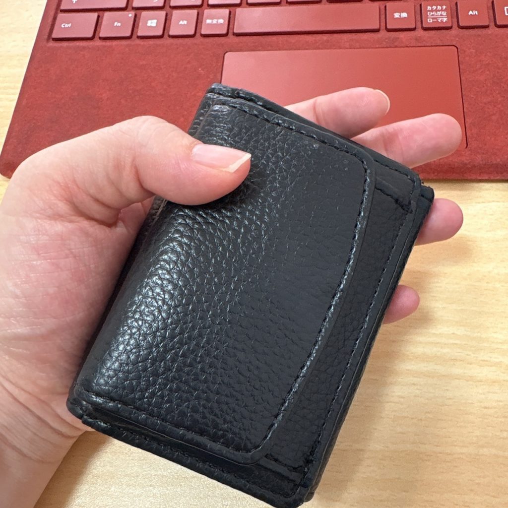 財布は横幅10㎝までのミニ三つ折りばかり持っています。素材はやわらかいほうが小銭もしっかり入るかなと。