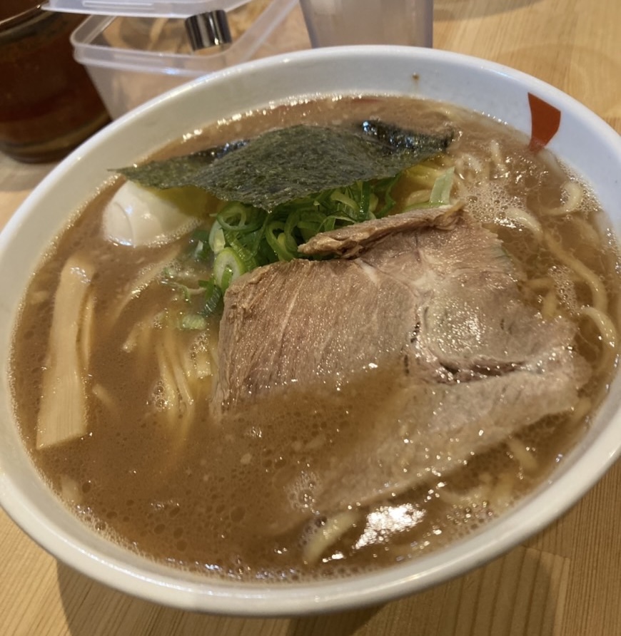 濃い味好きな人には是非おすすめしたい。豚骨醤油スープに背脂が入っためちゃくちゃ濃厚なスープです。麺は中太麺。仕事で疲れているとき、食べるとしみる一杯。