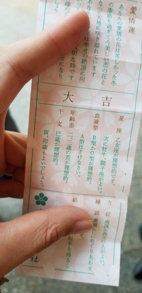 おみくじはラッキー大吉でした!太宰府天満宮のおみくじには『凶』がないそうですよ!