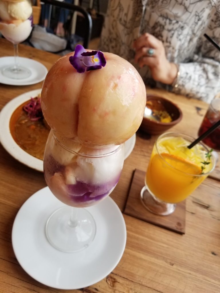 展望2Fにある、スカイ カフェ&ダイニング『ルフージュ』でひと休憩。Coloful Cream Soda(660円)を注文。かき氷のハワイアンブルーのそれです!笑
