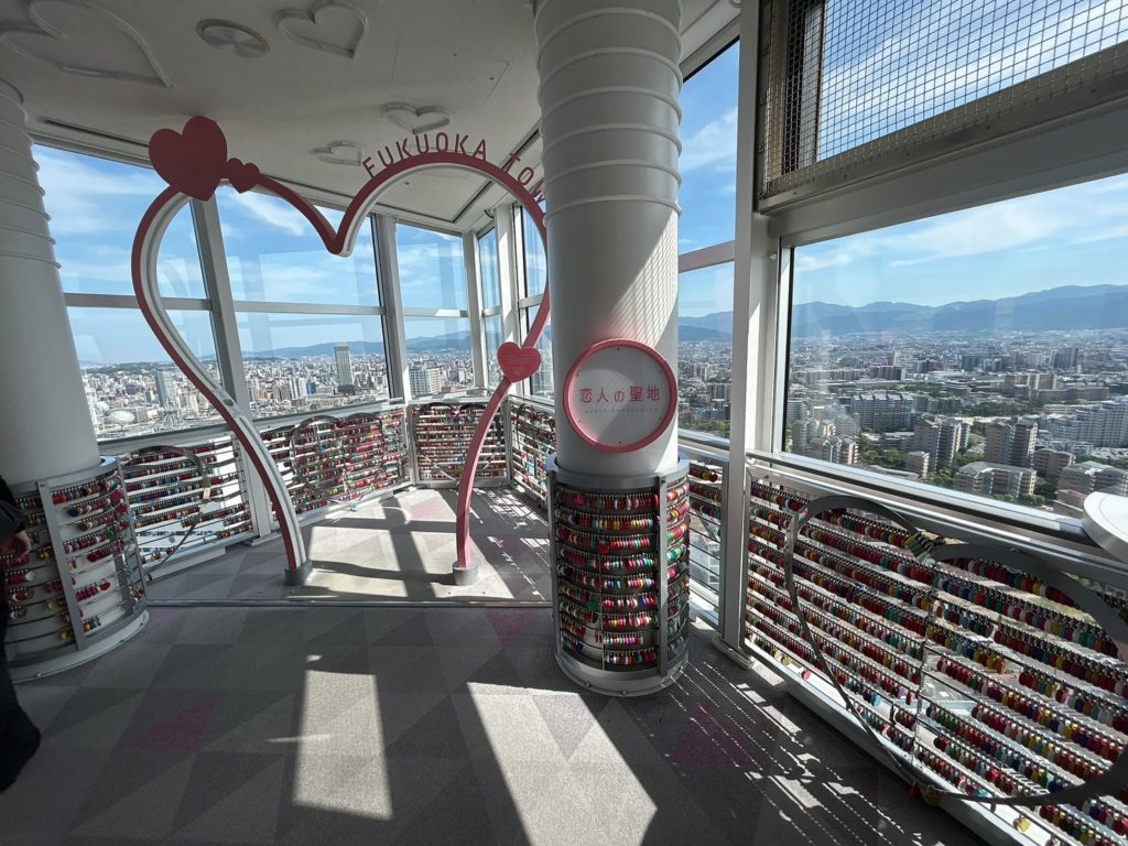 タワーの中から、福岡の街並みや博多湾などの景色を360度のパノラマで一望できます。福岡市で初めて「恋人の聖地」に認定され、福岡を代表するデートスポットになりました。現在はカップルだけでなく、推し活にも人気のスポットです!