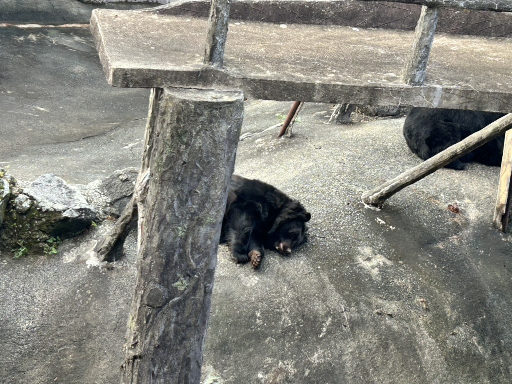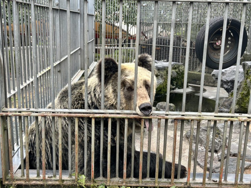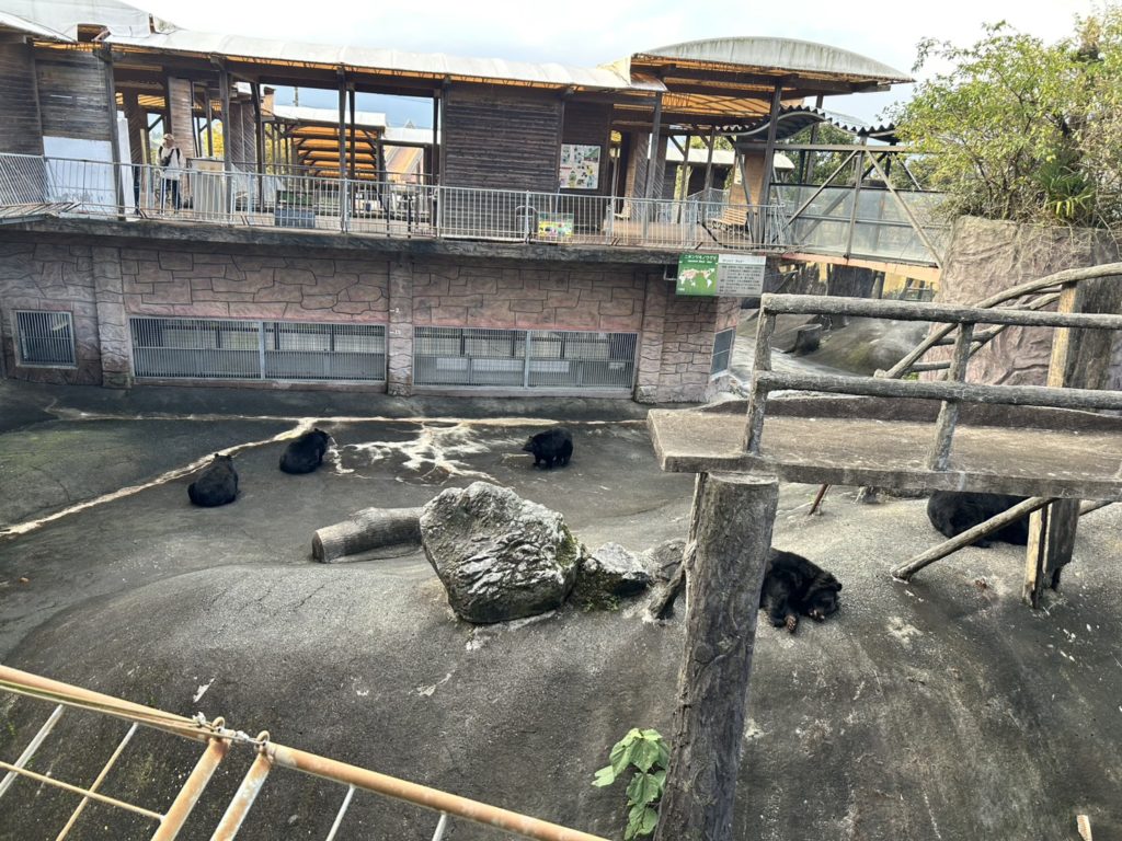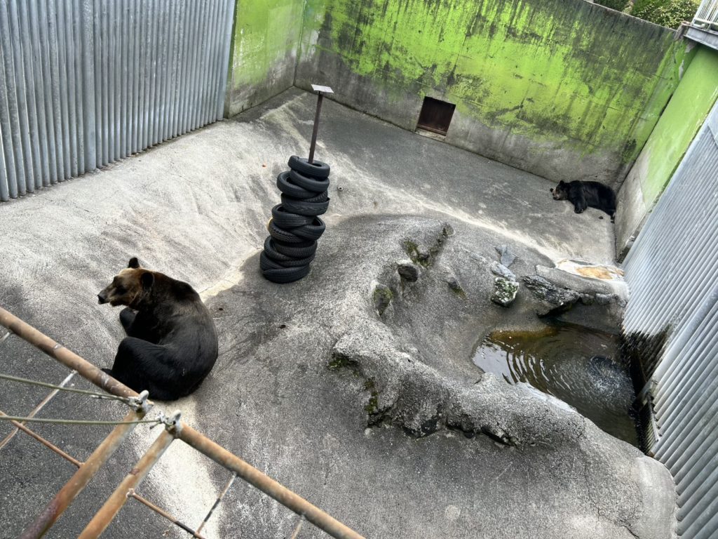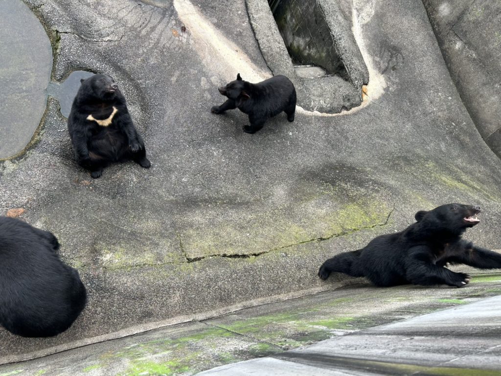 ↓ツキノワグマたち。エサをいっぱいもらっています。エサはフルーツがたくさんで、普通に美味しそうでした。笑