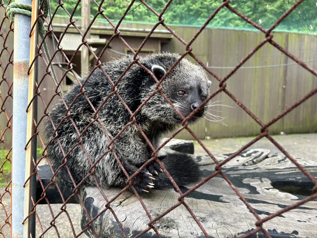 『ビントロング』。ジャコウネコ科の動物で、別名『クマネコ』ともいわれます。アーモンドのような香ばしい匂いの体臭なんですって!