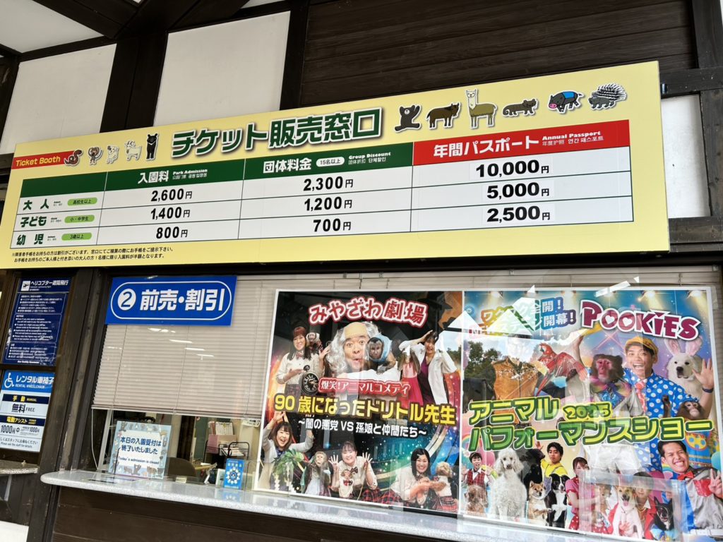 大人2,600円、子ども(小・中学生)1,400円、幼児(3歳以上)800円。↓年間パスポートお得ですね。